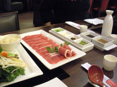 Furthermore, the quality of the Japanese Wafu broth and the Kurotobuta (pork belly) we dipped into the boiling broth was outstanding. The service (even though the restaurant was mostly empty) was extremely slow: we actually had to ask for bowls so we could enjoy the soup and the yakitori was not delivered hot and fresh from the grill. But the quality of the shabu shabu makes you want to be forgiving. I didn’t even dip the pork belly in the traditional ponzu or sesame sauce the combination fo meat and quick flash of swish cooking in the wafu was so good. The broth, after a adding a few thai chilis (I didn’t even sully it with their other condiments of scallions, garlic, or yozukusho, was a subtle complex soother. We also had the duck, but it was not nearly as good as the pork belly. We also had an acceptable appetizer of sashimi tostada- the cold was a good counterpoint for the hot of the rest of our dinner.