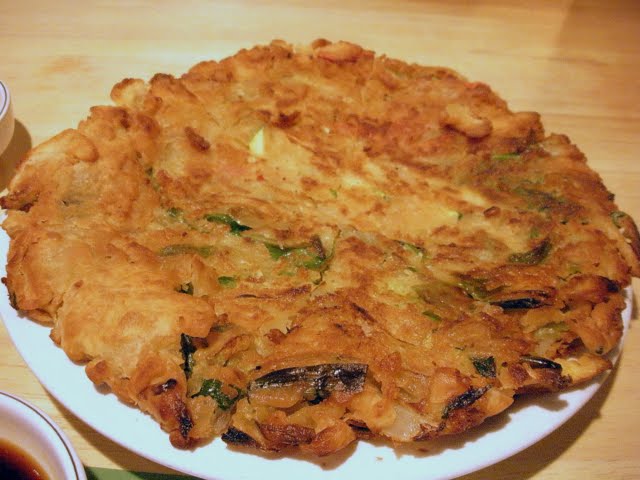 My favorite dish there was the vegetable pan-jun- it was so fresh and crispy. Pan-jun is a crispy rice flour pancake made with assortment of finely chopped vegetables inside. Mmmmm. Best pan-jun ever for me. Usually they come out a bit soggy in the middle, crispy only on the edges… here it was crispy everywhere, well executed frying here. Look at that crispness, almost made me feel guilty like I was having fries or hash browns or other deep fried potato goodness.