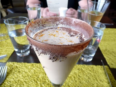 I started out with the Cinnamon Blood Orange Margarita, with H5O cinnamon anise tequila, orange liqueur, lime juice, orange juice, blood orange puree