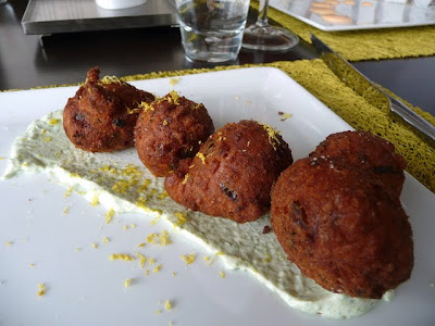 And then, the Portland Dining Month menu dinner. This was quite a meal, including the amuse bouche of Salt Cod Fritters with pickled pepper aioli, and even a sweet goodbye bite with the check.