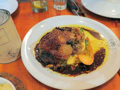 - Canard en Conserve – the famous Duck in a Can dish. They open it tableside with a can opener, turn it upside down on the platter, and slowly pull the can up, letting the cooked duck breast and foie gras just flow out of the can into what you see below. Seriously. I would recommend this as a dish to share.